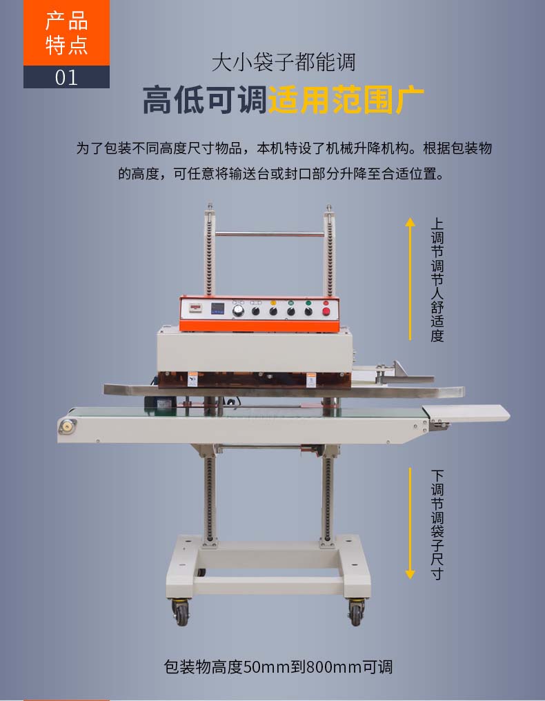 本系列塑料薄膜连续封口机分别适用于重量为