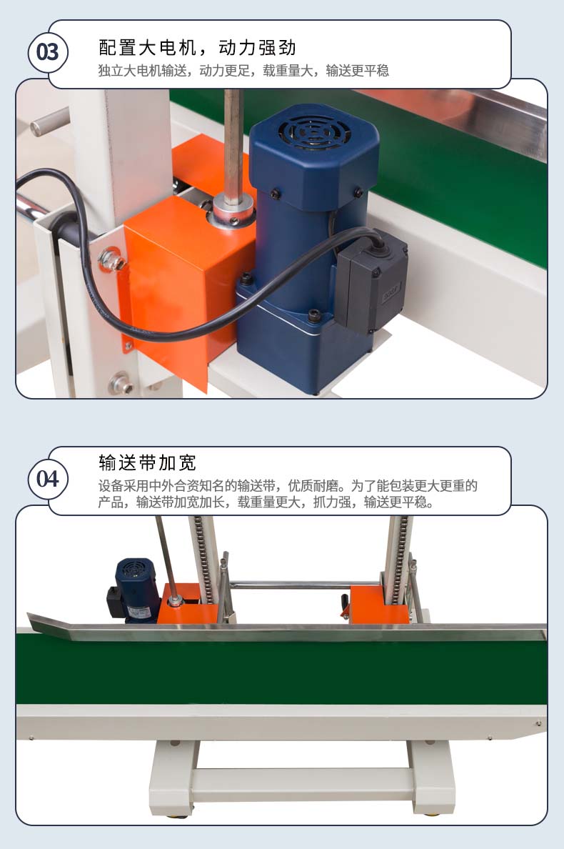 系列塑料薄膜连续封口机,是为热封薄膜较厚的包装袋而设计的。