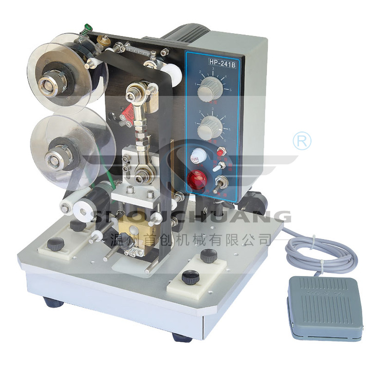 产品介绍:HP-241B色带热打码机可以在纸张,薄纸板,皮革,塑料薄膜,铝箔等材料上印制标签。采用色带打码,印字清楚,瞬印瞬干,恒温控制,温度可调,一般的普通色带均能装上使用,打印效果跟色带质量有关,该机可以电动连续打码,也可以配置脚踏开关.