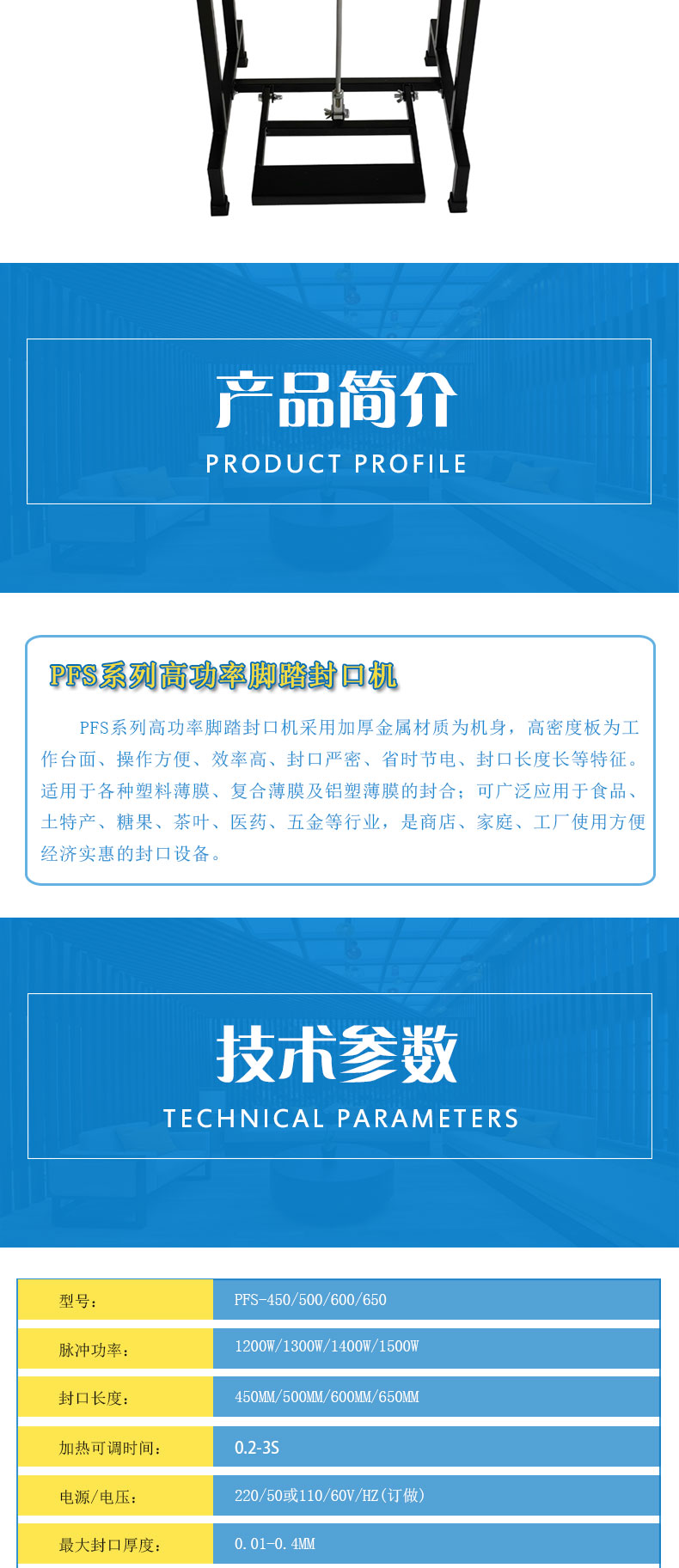 当前位置:首页》产品展示》PFS-450K脚踏封口机