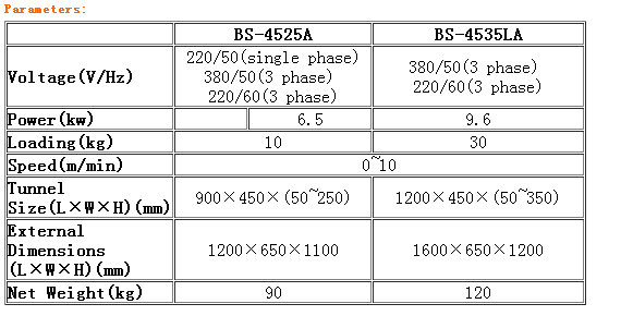 BS-A series shrink tunnel are applied to heat shrinkable film such as PVC, POF, PP etc,