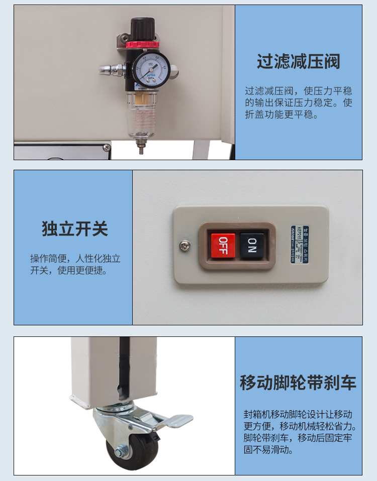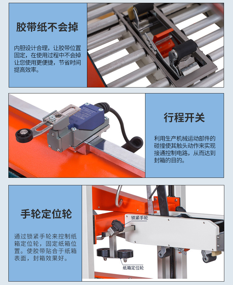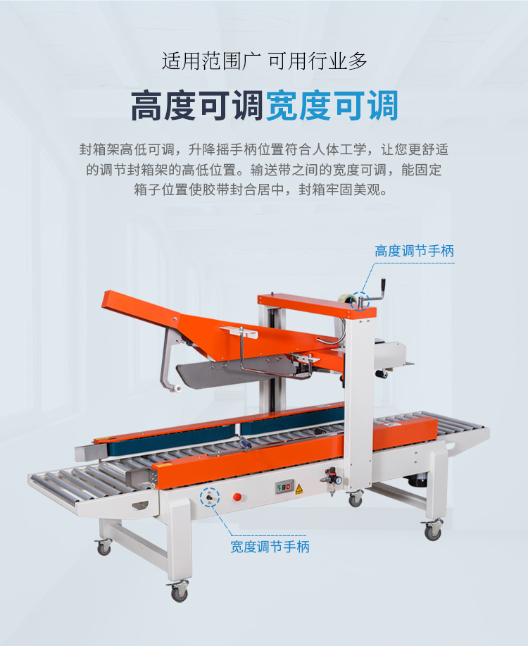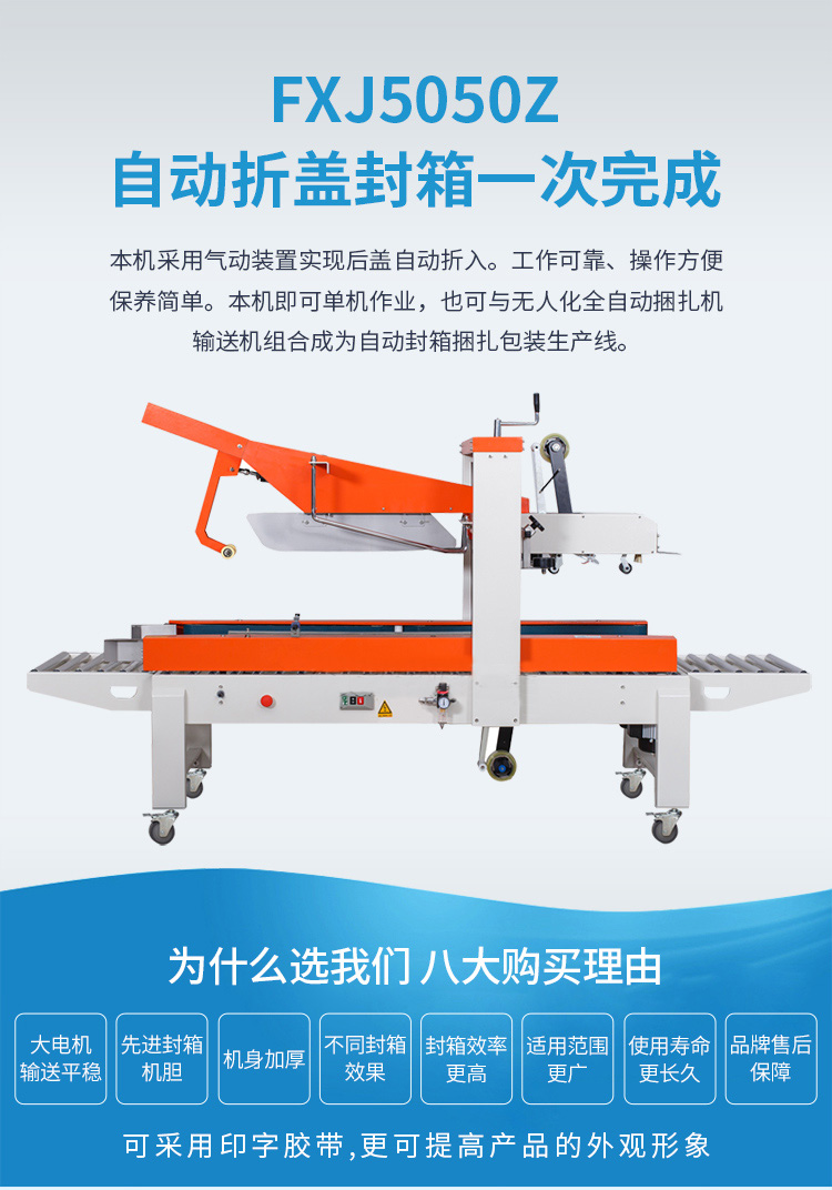 The machine is mainly useful for the sealing and packing of cartons,which can be single-unit operation or also equipped into production line.It is widely used in the fields of electrical appliance,foodstuffs,general merchandise,medicine and chemical industry.The top,side and back flap of the carton can be folded automatically,with high speed &smooth.