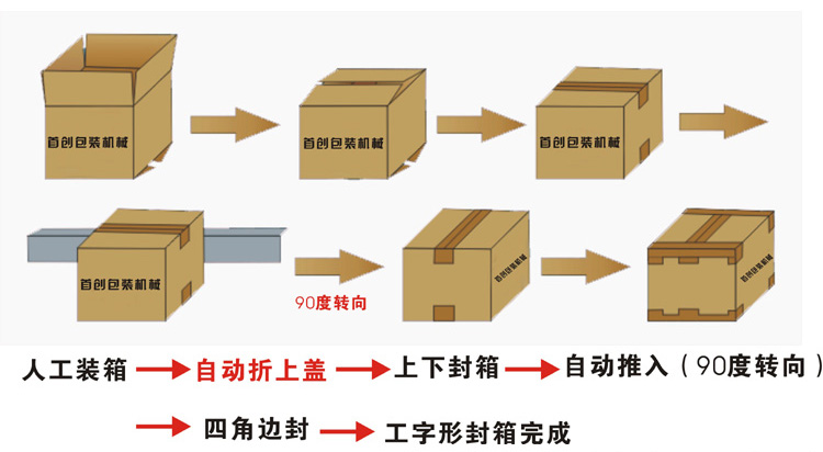 Product synopsis:Pioneered in wenzhou machinery co., LTD. According to the years of sealing machine research and development experience, at the same time introduce and absorb Japan, Germany, Italy and other international counterparts in terms of sealing machine, advanced technology, exquisite advanced international technology and adopt international famous brand electrical configuration, high quality imported components, ensure the machine use stable, durable, the machine adopts PLC control, simple operation, easy maintenance, stable performance.The corners of the automatic sealing edge sealing production line (automatic sealing i-section sealing machine) materials thick, with heavy with auxiliary brake casters, move extremely flexible, stable, more convenient in installation and debugging.Safety design.Carton sealing machine parts precision and durable performance, structure design, operating process, no vibration, stable and reliable in operation.Equipped with blade protection device, to avoid accidentally stabbed during operation, safe production, efficient packaging.Parts through the aging test, to ensure that every detail is more stable, low failure rate. Scope of application:Automatic folding &sealing four side sealing production line (automatic folding &sealing i-section sealing machine), in front of the folding &sealing machine, by artificial fold at the bottom of the first, after the products into the carton, directly into the folding &sealing machine, automatic folding &sealing machine on the carton lid of the folded one-time complete sealing up and down. Edge Angle sealing machine is responsible for completing the four side of carton tape sealing, the sealing machine performance is stable, reliable quality, sealing, high efficiency, strong applicability, long service life;Use the stick tape sealing, rapid economic, convenient adjustment.Two machines together to i-section sealing is completed.Directions for use:(1) according to the carton specifications, manual adjusting machine width and height, simple and convenient, fast. (2) after folding &sealing machine due to seal the cartons into 90 degrees of corner conveyor, by pushing board into the edge Angle sealing machine; (3) through the edge Angle sealing machine to complete the four side sealing up and down, finally to achieve perfect h sealing; (4) apply to a variety of automatic folding carton sealing cover h, carton and the four corners and automatic sealing, smooth, fast, smooth, and also can be used with automatic packaging line. Automatic sealing the four side sealing production line (automatic sealing i-section sealing machine) suitable for production line, need h packaging enterprises to choose, greatly reduce the labor, solve the enterprise hiring difficult, workers difficult management problem, this set of machine has been widely used in food, medicine, tobacco, chemical, toys, electronics and other industries at home and abroad.