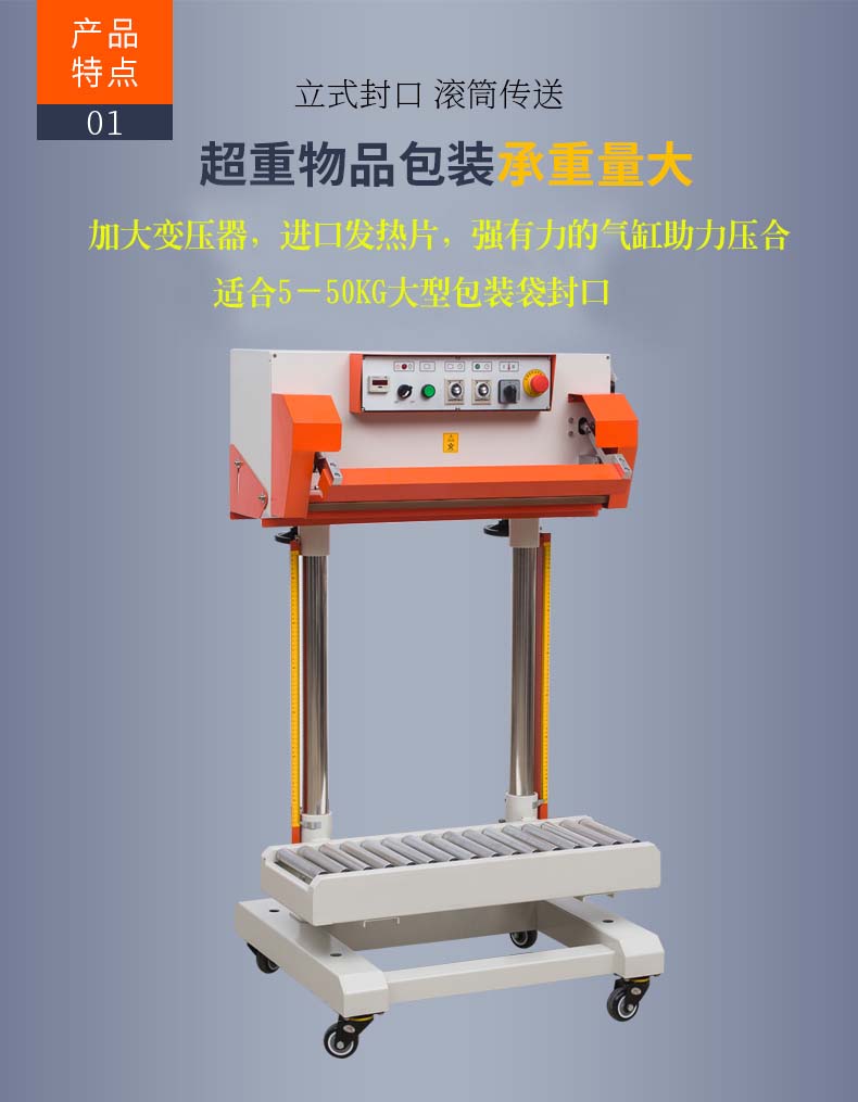 QLF-700A pneumatic sealer is widely used in chemical industry, foodstuff, feedstuff industries to seal various plastic film bags and compound bag whose sealing length is less than 700mm and weight is less than 50kg, but according to special order, the sealing length can be increased to  800mm, 1000mm. The machine can also run together with conveyor or production line.