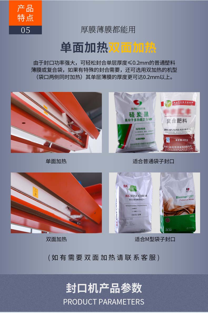 QLF-700Apneumatic sealer can be operated by hand or by pedal. For the thicker bag, you can choose pneumatic sealer QF -700L/S with function of double heating.